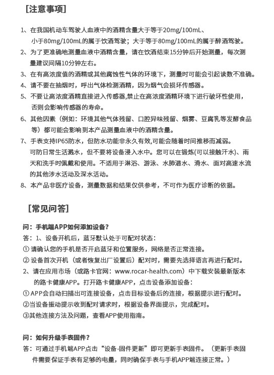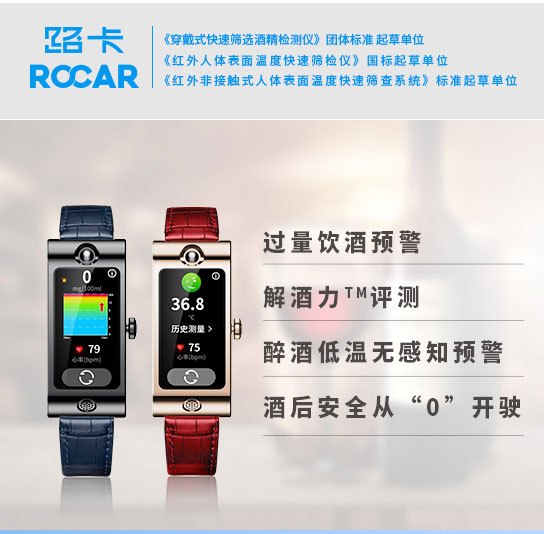 CEM路卡(ROCAR)智能酒精檢測(cè)手表健康飲酒喝酒預(yù)警酒精測(cè)試大屏幕心率血氧